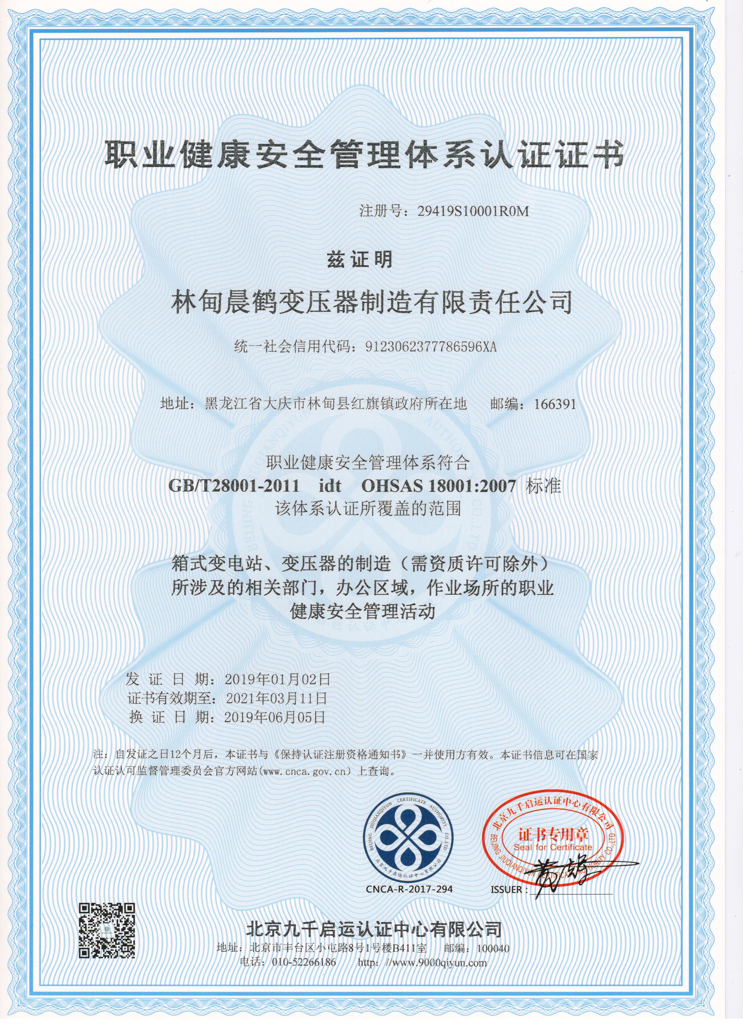 大慶市林甸晨鶴變壓器制造有限責任公司是一家從事研發、生產、銷售及服務為一體的變壓器生產廠家。設備完善、技術力量雄厚,已取得質量管理體系認證證書。...